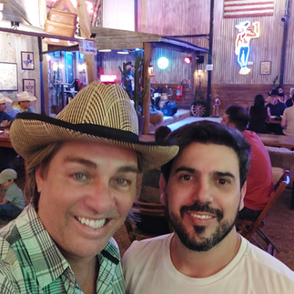 Quando a noite finalmente chegou, parecia que o dia ganhava fase dois. E, claro, fomos conhecer um ponto especial de Jaguariúna: o Na Lenha. Um bar country texano que parecia ter sido teletransportado direto do interior dos Estados Unidos. Decoração temática caprichada, música ao vivo e um clima acolhedor daqueles que misturam madeira, risadas e um bom toque de aventura.