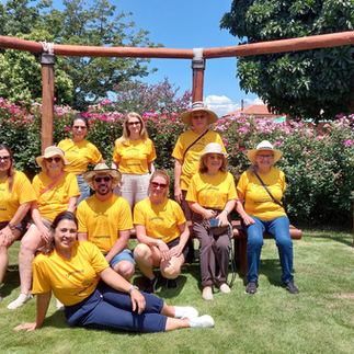 Os viajantes se espalharam pelo parque como quem acaba de entrar num jardim encantado. Cada flor — das mais delicadas às mais exuberantes — virava motivo de foto, conversa e descoberta. E foi ali que o ápice do lugar roubou a cena: as rosas. Um espetáculo à parte. Era cada viajante inclinando o rosto para cheirar uma rosa diferente, e o grupo, com suas camisas amarelas do Caminhos, parecia um enxame simpático de abelhas polinizando alegria por onde passava. Uma cena tão doce que dava vontade de aplaudir.