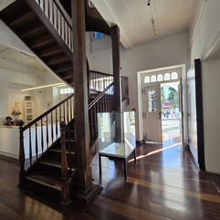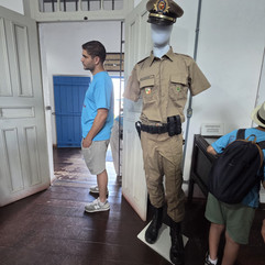 A antiga cadeia foi uma de nossas primeiras paradas e, sem dúvida, um dos elementos mais diretos e crus da cidade. Construída com técnicas coloniais genuínas — utilizando barro, pedra e uma argamassa enriquecida com óleo de baleia, prática muito comum no litoral pela extrema resistência que proporcionava —, o edifício apresenta uma espessura de paredes muito significativa e aberturas reduzidas. São características funcionais claras, pensadas para a contenção. Uma arquitetura sem qualquer ornamento, onde a forma responde estritamente ao uso. Nosso grupo, com aquele olhar afiado de sempre, estava atento a cada pequeno detalhe construtivo e às tipologias dos mobiliários ali presentes. Em seguida, fomos logo ao lado conhecer um típico café local, onde pudemos fazer uma pausa afetuosa para o nosso cafezinho e degustar as saborosas guloseimas da região.