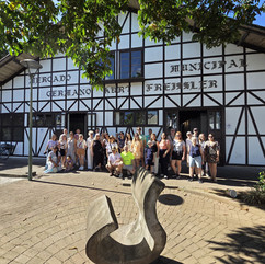 Encerramos a visita com uma merecida pausa no Café Bistrô Retrô, um ambiente charmoso que trabalha muito bem a memória afetiva através de sua ambientação e da curadoria cuidadosa de objetos. O café da tarde cumpriu um papel importantíssimo de convivência, mantendo o grupo integrado e aquecido por boas trocas. À noite, a experiência se deslocou para um biergarten típico, nos presenteando com uma culinária alemã consistente e um ambiente perfeitamente alinhado à proposta cultural da cidade. O jantar fechou o nosso primeiro dia com um equilíbrio impecável entre conteúdo e experiência.