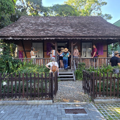 Iniciamos a imersão no Museu da Imigração, um espaço que funciona como uma introdução consistente e necessária à ocupação europeia na região. O conjunto preserva não só a organização espacial e o mobiliário, mas elementos construtivos que nos ajudam a entender, de forma tátil, o modo de vida da época. Nos fundos, fomos presenteados com a presença marcante de uma residência típica da arquitetura enxaimel. Muito além de ser uma linda cenografia histórica, ela nos ensina como sistema construtivo: a estrutura em madeira com seus preenchimentos precisos, a lógica modular e a sabedoria da eficiência térmica — uma técnica preciosa trazida pelos imigrantes e perfeitamente adaptada ao nosso contexto local.