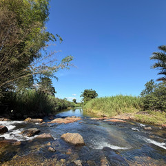 Foi também ali que a palavra "experiência" fez jus ao seu nome da forma mais linda possível. A alegria contagiante das crianças do grupo, Ayla e Davi, trouxe uma leveza e uma verdade avassaladoras ao momento. Enquanto muitos de nós apenas observavam a paisagem, eles simplesmente viviam. Pés descalços na água, mãozinhas curiosas tateando as pedras, brincadeiras simples e muito espontâneas que transformaram o nosso cenário em uma experiência de vida completa. Não havia qualquer roteiro para aquilo — havia apenas a mais pura presença. E, curiosamente, foram eles que nos lembraram, de forma silenciosa e potente, como se ocupa um lugar de verdade.