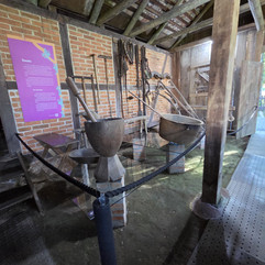 O pequeno Museu de Maquinários, logo ao lado, reforça essa nossa leitura do espaço ao apresentar equipamentos e utensílios intimamente ligados à produção, especialmente ao beneficiamento da erva-mate e aos processos de moagem. Fica evidente ali a relação direta, visceral, entre a arquitetura, o trabalho braçal e a ocupação do território.